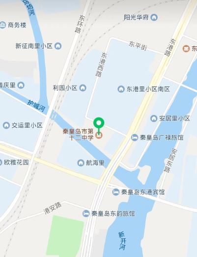 3、下图为第十二中学地址:海港区东港路157号